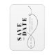 Trendy, moderno e elegante este design simplista preto-e-branco com seu fino pergaminho faz o anúncio perfeito para Salvar a Data do seu próximo casamento. Personalize facilmente com detalhes importantes da escolha.