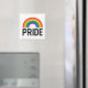 Esta design apresenta a palavra orgulho sob um arco-íris colorido.