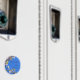 Um primavera atraente e fresco floresce contra um íman de casamento azul vívido personalizado com seus nomes e data.