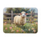 Uma pintura deliciosa de uma ovelha primavera cercada por flores silvestres coloridas num campo sereno. As texturas suaves e matizes vibrantes trazem um charme pacífico e pastoral para esta paisagem rústica.