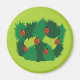 O ímã da primavera com uma ilustração lunática dos desenhos animados dos joaninhas vermelhos que rastejam sobre o verde sae em máscaras diferentes sobre a luz - fundo verde. Este ímã lunático apelará a uma menina do amante de natureza que goste da estação de primavera e do verde da cor.