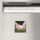Menina segurando um ovo ganso com a mensagem do Dia da Mãe.
