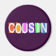 Design de COUSIN estilo retrô com texto branco sobre quadrados coloridos de fundo. O texto cria efeitos diferentes em planos de fundo escuros ou claros. Altere o estilo ou a cor para tornar isto seu próprio! Adicionar texto à frente ou atrás. Isso faz uma ideia de presente de excelente para sua prima no seu aniversário, na graduação ou em qualquer outro dia especial.