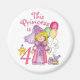 Quarta princesa bonitinha de aniversário vestindo um chapéu em forma de cone (hennin) com balões neste divertido aniversário de menina medieval com texto que lê "Eu tenho 4" em rosa.