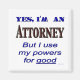 Sim, sou advogado, mas uso meus poderes para dizer bem. Slogan de advogado engraçado para profissionais em letras legais em blues e browns.
