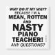 Porque É Que É Assim? Porque sou um professor de Piano Malvado, Rotten e Nojento! Alguma Pergunta? Às vezes é hora de acabar a discussão e fazer as coisas do seu jeito!
