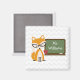 Este produto para professores ilustra uma raposa que veste rochas de rocha, com óculos retrorados de olhos de gato, em pé de um quadro com maçã vermelha. Personalize o nome no quadro. O fundo é o padrão de fêmur da cinza leve. Procure por itens correspondentes na Escola Rosa.