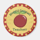 Um ímã redondo com fundo vermelho e bolinhas amarelas. No centro está a maçã vermelha tradicional e o texto "Maior Professor do Mundo". Este ímã faria um bom obrigado de apreciação do professor para você oferecer.