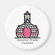 Este produto apresenta uma ilustração de uma escola coberta por impressão houndstooth com sotaques cor-de-rosa puro. O texto abaixo diz "Professor de segundo grau". Para adicionar mais texto ou imagens, clique em "Personalizar!" Procure por itens correspondentes na Escola Rosa.