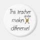 O design de texto preto com um lápis amarelo diz "Este professor faz toda a diferença!". Este design de professor fofo em Camisetas de professores, canecas, mousépias, adesivos, ímanes, sacos de tote e outros itens é um dos nossos itens de professor mais populares!