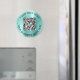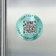 Íman simples de promocional para a sua empresa ou organização com um fundo metálico falso verde de menta escovada. Adicione seu código QR ou logotipo e duas linhas de texto personalizado, como nome da sua empresa, slogan, obrigado ou deixe o vazio.