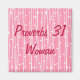 Um íman de geladeira bonito cor-de-rosa, 31 mulheres, este design apresenta um fundo cor-de-rosa e branco com "Proverbs 31 Woman" escrito usando um escrevendo cursivo cor-de-rosa. Escolha o seu hoje!