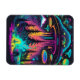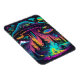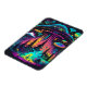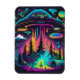 Uma cena de acampamento de OVNI neon no céu noturno.