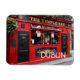 Imã de geladeira retangular de souvenir com o famoso pub vermelho com as cestas de flores penduradas no bairro de Temple Bar, em Dublin, a capital da Irlanda e o texto: "Dublin".