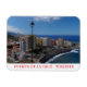 Uma visão panorâmica de Puerto de la Cruz na ilha de Tenerife, nas Ilhas Canárias, impressa numa imã de geladeira de souvenir.