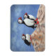Uma ilustração de três alfinetes tocados num penhasco rochoso, contra um céu azul vibrante.