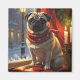 Uma cena de Natal emocionante, com um cão sentado pacificamente ao lado de uma janela, rodeado de luzes de Natal brilhantes. Essa design acolhedora e festiva captura o espírito da estação, perfeita para adicionar calor e charme a qualquer espaço. Ideal para amantes de cachorros e entusiastas de decoração.