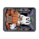 Pumpkins For Sale & Caffeine Ghost & Cat V2 Magnet. A white sheet ghost lounges on a giant pumpkin, pumpkin leaf hat flopping in the rain, sipping coffee like a spooky barista. Beside a “Pumpkins for Sale” sign, Mr Cat wearing a witch hat, plots world domination. Halloween hustle? More like haunted hangout.