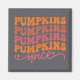 O design de "Pumpkins Spice" é uma representação divertida e vibrante do amado sabor de queda, picada de abóbora. O design apresenta de forma destacada a palavra "PUMPKINS" repetida cinco vezes em uma fonte em negrito, em estilo retrô, com bordas arredondadas, cada instância empilhada sobre a outra. A repetição enfatiza a palavra e torna a design instantaneamente reconhecível como uma celebração de todas as coisas abóbora.