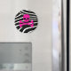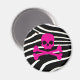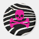 Crânio rosa quente com fundo de impressão zebra preto e branco. Por Brattigrl