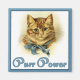 Design com um adorável gato marrom vestindo uma coleira azul de fita. Este doce gatinho tem texto que diz Purr Power.