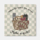Cesto primitivo do país cheio de country whimsy. A legenda diz: "Quando a vida te dá um murro, faz uma colcha!"