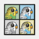 Quatro diferentes morfos de cores comuns do Budgerigar são apresentados neste design de estilo pop. É uma ideia perfeita de presente para qualquer amante de Budgerigar! Você pode personalizar este presente! Movimente a design, altere a cor ou o estilo do produto, adicione texto ou imagens — faça dela sua!