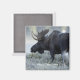 Foto de: Hugo Kitching. Mose masculina está na beira do lago nebuloso, no início da geada do outono. Local: Lago Maligne, Alberta