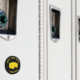Roda fatiada de queijo amarelo. Cor de fundo personalizada. Dois campos de texto personalizados em círculo.