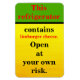 Este ímã verde e amarelo tem um texto vermelho e preto com a seguinte menção: "Este refrigerador contém queijo Limburger. Aberto por sua conta e risco." Este texto está pronto para personalização, se você quiser, ou deixe-o como está. Este é um design de Dean Johnson de Arte Fina. Obrigado pela compra.