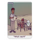 Um imã com um cartão de cartoon fofo e engraçado sobre os animais que estão à espera numa sala de espera de um veterinário. Arte original de DBcartoons.
