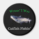 Quer você esteja rabiscando ou pescando com um gancho e um afundador, poucas coisas se comparam à captura de um peixe-gato poderoso e delicioso. Yum. Cor do cheio imagem detalhada de um peixe-gato com o texto Wishin I was Catfish Fishin.