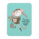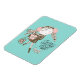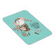 Ilustração caprichosa e desenhada à mão de uma menina vestida de inverno, presente de Natal de carregando, caminhando com seu cachorro e texto curvado de "Doce Vontade de Natal". Fundo azul-aqua claro.