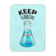 Magneta de química bonita para mulheres em ciência com um personagem de frasco nerd sorridente com óculos e o texto engraçado "Manter borbulhante".