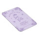 Anuncie seu dia especial com um guardião que seus hóspedes vão amar! Este ímã flexível personalizado é a forma perfeita de partilhar a sua Quinceañera, para salvar a data. A bela design de lavanda apresenta ilustrações brancas e desenhadas à mão de uma coroa, borboletas e sotaques florais, fazer elegante e memorável. Personalize-o com o nome, a data e a localização do evento, e os seus convidados podem colocar este ímã único no seu frigorífico como um lembrete encantador. © Kimbellish, LLC
