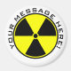 Design do símbolo radioativo, preto e amarelo, com texto circular configurável!