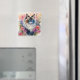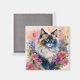 O Magnet apresenta uma delicada trabalho de arte de aquarela de um belo gato boneco de pano cercado por flores num retrato de animais estéticos femininos. O felino fofo, de olhos azuis está olhando para o lado nesta vibrante pintura floral multicolorido.