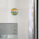 Cena de paisagem abstrato de uma zona de montanha com colinas rolantes e uma tempestade de chuva em laranja, ouro, azul e ciano.