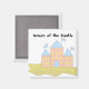 Para a Rainha do Castelo aqui está um castelo de areia rosa com torres azuis e bandeiras azuis balançando em um pedaço de areia. Um ditado divertido!