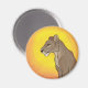 Esta é uma pintura digital de uma leoa com um belo pôr do sol africano atrás dela.
