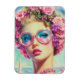 Uma ilustração digital captivante de um retroglame de uma mulher na moda que veste óculos de sol cor-de-rosa e uma coroa floral vibrante. Cercado por céus tropicais, palmeiras e veleiros, este trabalho de arte sonhador expele a elegância vintage da praia e o encanto de alta moda. Perfeito para produtos Redbubble como posters, capas de telefone, roupa e adesivos, ele traz cores, beleza e vibrações de verão ousadas para qualquer coleção.