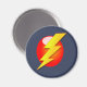 Um gráfico vibrante de um raio amarelo sobre um fundo circular vermelho, simbolizando velocidade, potência e energia, lembrando a iconografia de super-herói.