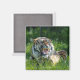 Um grande rugido de Sumatran Tiger. Mostrando seus dentes caninos. Seu rosto todo estalado. Os sussurros claramente visíveis. Ninguém vai roubar sua comida.