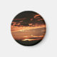 Este ímã ficará excelente em uma geladeira ou mesmo em um dormitório. Com um belo pôr do sol e os raios do sol brilhando através das nuvens negras e brancas. As cores do céu são vermelho, ouro, laranja sobre uma paisagem com muitas árvores. Disponível em redondo ou quadrado.