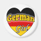 Leuke magneet encontrou een hart afgebeeld encontrou de Duitse vlag erop. Op de tekst staat: Duits meisje De achtergrond está em de kleur wit. Leuk om the geven als cadeau of voor jezelf om the laten zien dat je trots bent om een Duitser te zijn. kleuren: rood, geel en zwart.