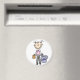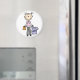 Uma moça com uma mochila com itens personalizáveis de figurinhas de temas escolares.