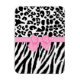 Um padrão de impressão preto e branco giro e tenra com uma impressão leopardo moderna no topo e um padrão de zebra chica no fundo dividido por uma fita rosada girada amarrada como um arco. Perfeito para a na moda.