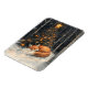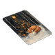 Arte magnética flexível com uma adorável raposa dormindo em frente a uma árvore de Natal na floresta.