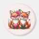 Magnet com uma imagem adorável de 2 raposas vestindo óculos de coração agudos de rosa. Decorado com sotaques cardíacos.