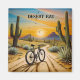 pintura por sol de uma bicicleta no deserto cercada por cactos